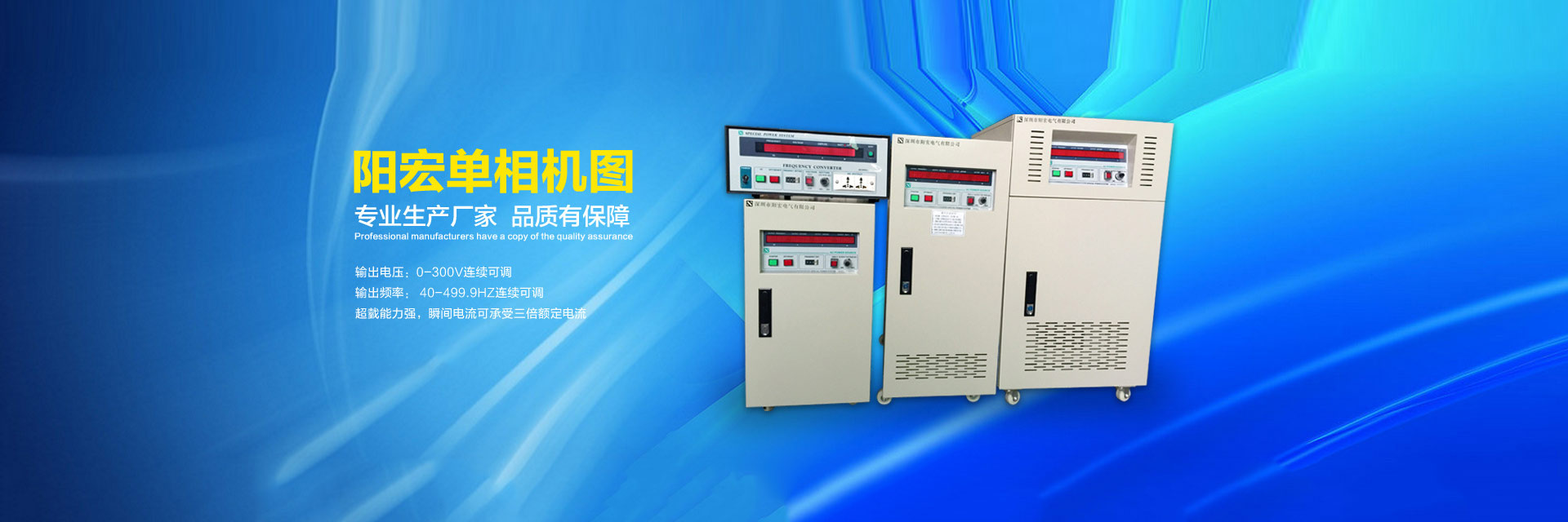 20年變頻電源制造品質(zhì)-陽(yáng)宏變頻電源為您提供5KVA變頻電源,10KVA變頻電源,20KVA變頻電源,30KVA變頻電源,45KVA變頻電源,60KVA變頻電源,75KVA變頻電源,深圳單相/三相/交流變頻電源等。 模擬式變頻電源,晶體管式變頻電源,可編程式變頻電源,單相大功率變頻電源,三相大功率變頻電源是陽(yáng)宏電源股份有限公司的核心產(chǎn)品。深圳市陽(yáng)宏電氣有限公司隸屬臺(tái)灣陽(yáng)宏電源股份有限公司,是一家變頻電源開(kāi)發(fā)、研制、生產(chǎn)、銷售和服務(wù)的高新技術(shù)企業(yè)。其大陸工廠:深圳市陽(yáng)宏電氣有限公司,是臺(tái)灣陽(yáng)宏電源股份有限公司在中國(guó)大陸一家分公司,地址:深圳市寶安區(qū)觀瀾街道觀瀾高新科技園區(qū)。 臺(tái)灣陽(yáng)宏電源股份有限公司創(chuàng)建于1995年,目前除了臺(tái)北公司以外,在中國(guó)的廣東深圳設(shè)有分公司,工廠擁有許多的先進(jìn)設(shè)備。具有年產(chǎn)各種電子儀器電源設(shè)備20000臺(tái)以上,工廠有嚴(yán)格的生產(chǎn)能力,強(qiáng)大的開(kāi)發(fā)技術(shù)的管理制度,可以接受新高技術(shù)產(chǎn)品的開(kāi)發(fā)與研制。